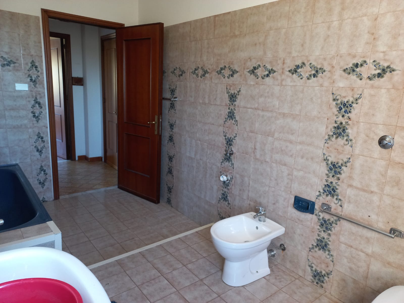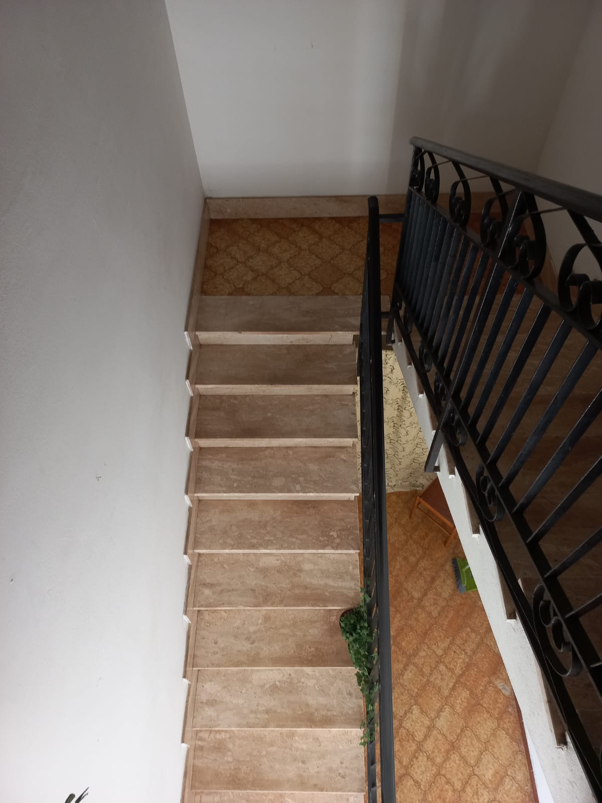 La villetta è composta piano terra, con due locali garage di cui uno con ufficio, scala interna per accedere al piano primo, composto da ingresso, due camere con unico balcone, ampio soggiorno, cucina con balcone, cucinino, bagno, scala interna per accedere al piano secondo alla mansarda calpestabile ma non abitabile.